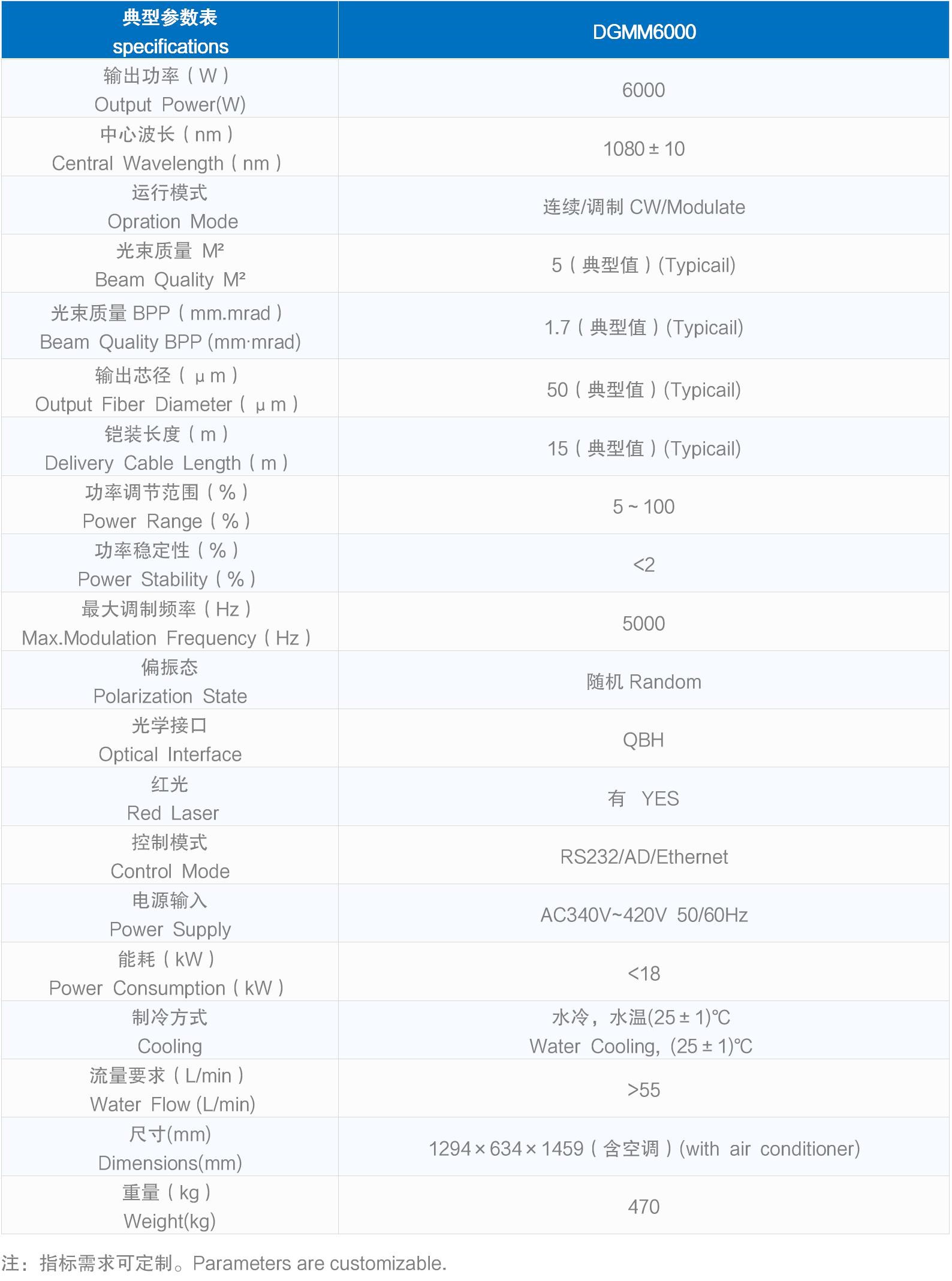 典型参数表 specifications | DGMM6000 | |||