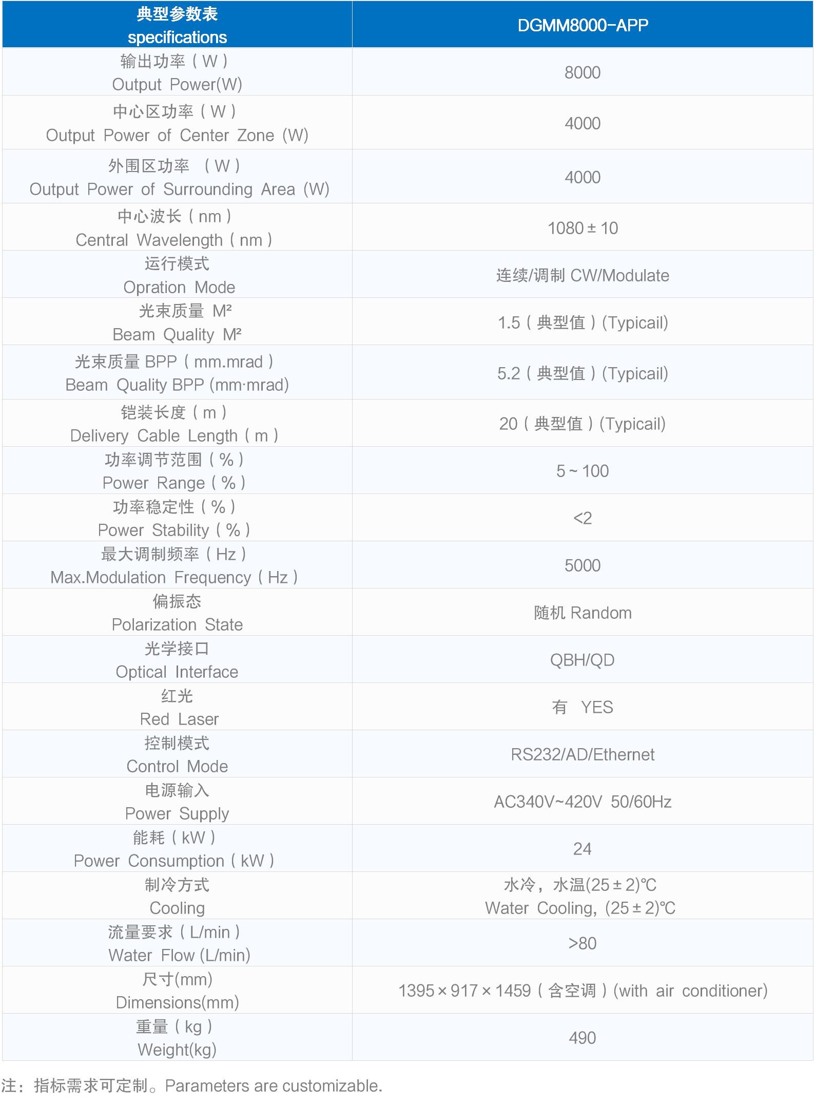 典型参数表 specifications | DGMM8000-APP | |||